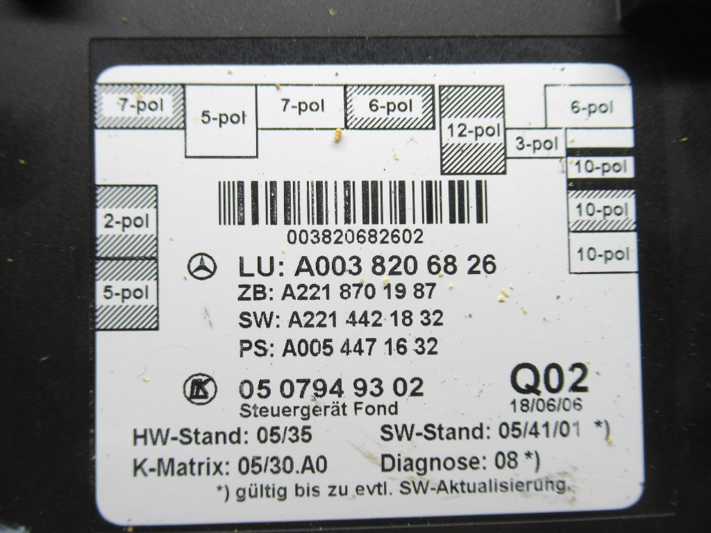 2007-2013 Mercedes S600 S550 Rear Door Control Module A0038206826 OEM