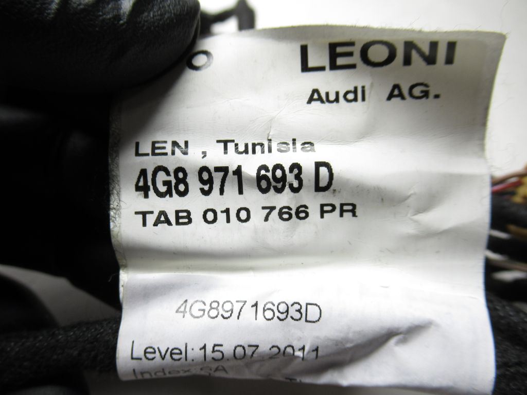 2012-2018 AUDI A7 Rear Right Door Panel Wiring Harness 4g8 971 693 OEM